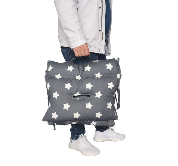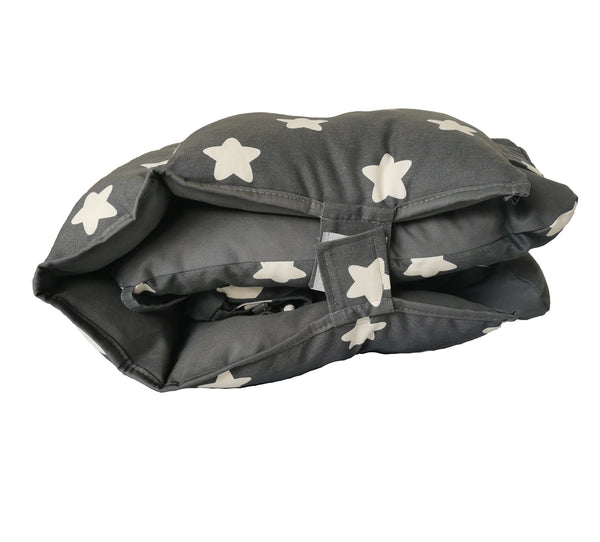 - einfach faltbar und superleicht zu transportieren durch integrierte Kletthalterungen und Tragegriff